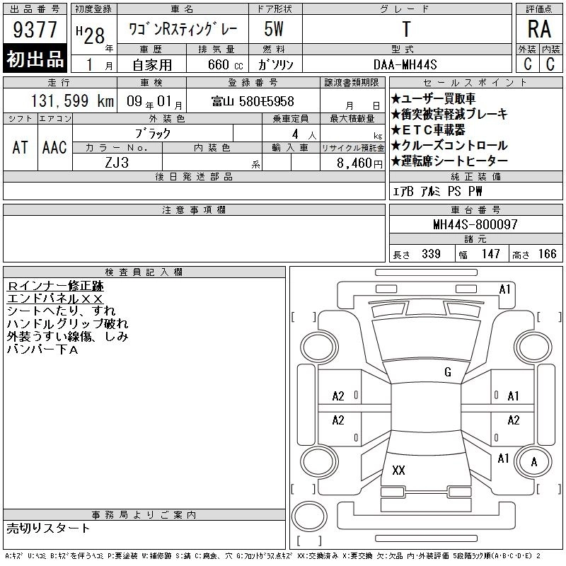 Статус выставлен на аукцион Лот 9377 Аукцион CAA Chubu Дата аукциона 11.03.2026