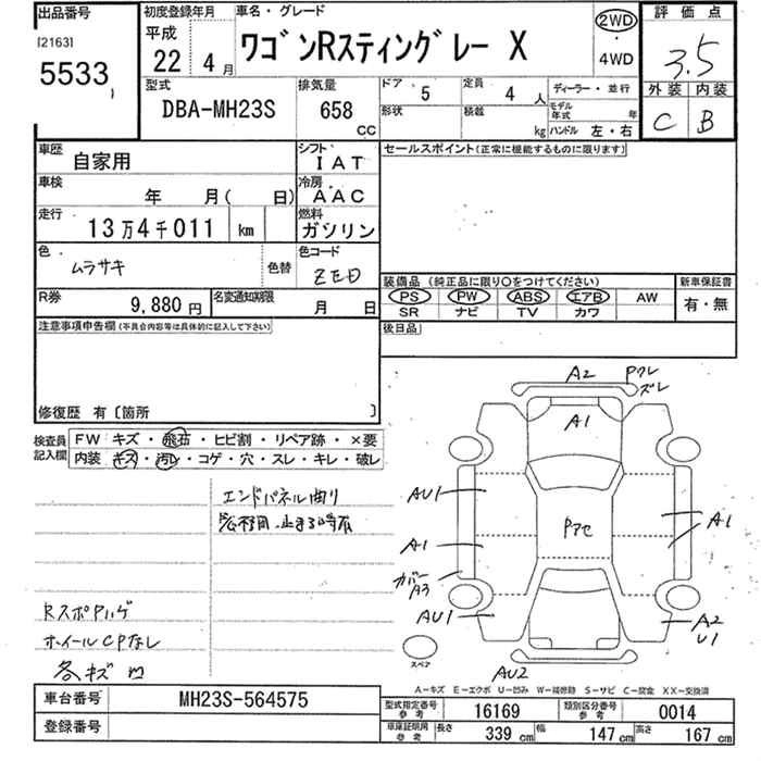 Год выпуска2010 Пробег 134 000 км КузовMH23S КомплектацияX