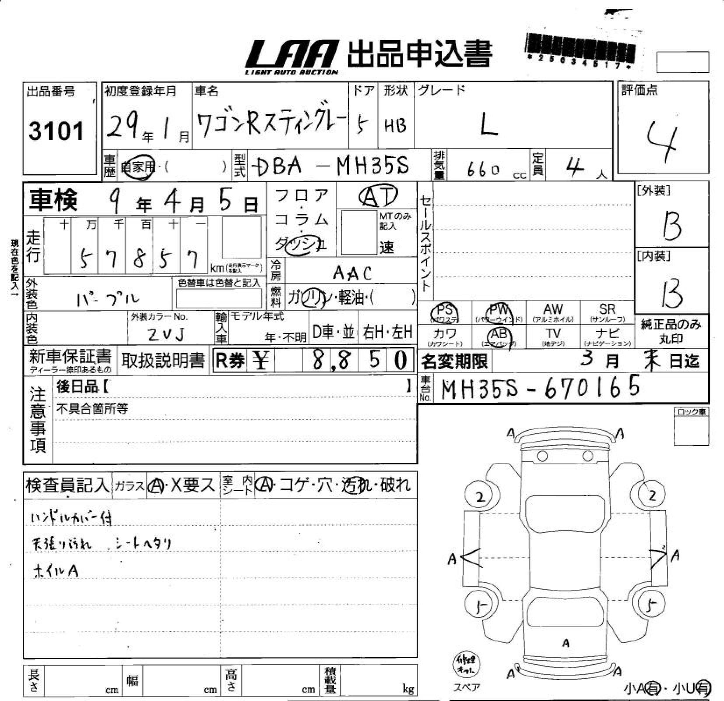 Статус выставлен на аукцион Лот 3101 Аукцион LAA Shikoku Дата аукциона 11.03.2026