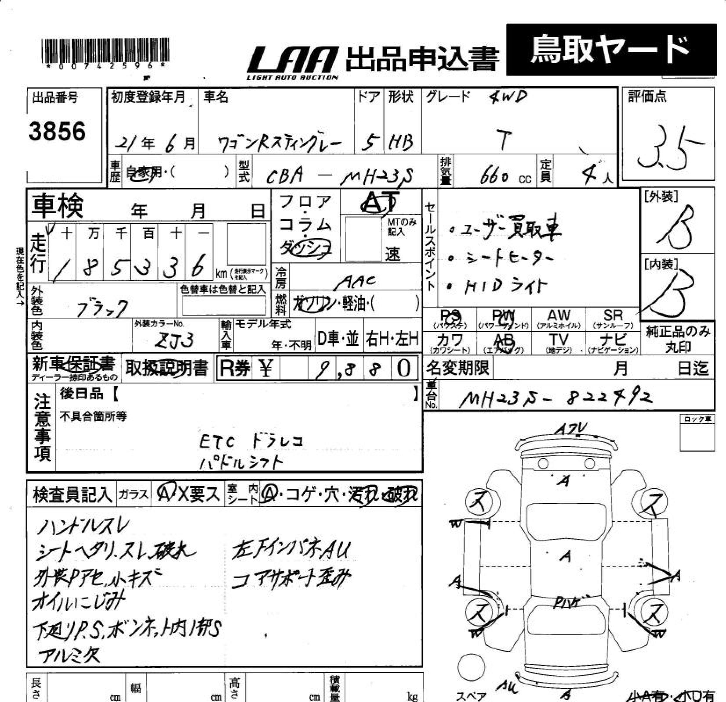 Статус выставлен на аукцион Лот 3856 Аукцион LAA Okayama Дата аукциона 13.03.2026