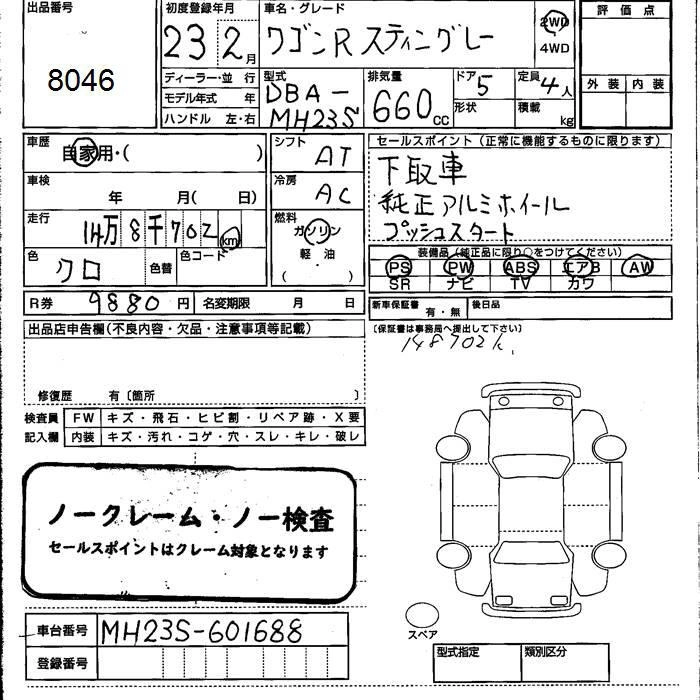 Год выпуска2011 Пробег 149 000 км КузовMH23S