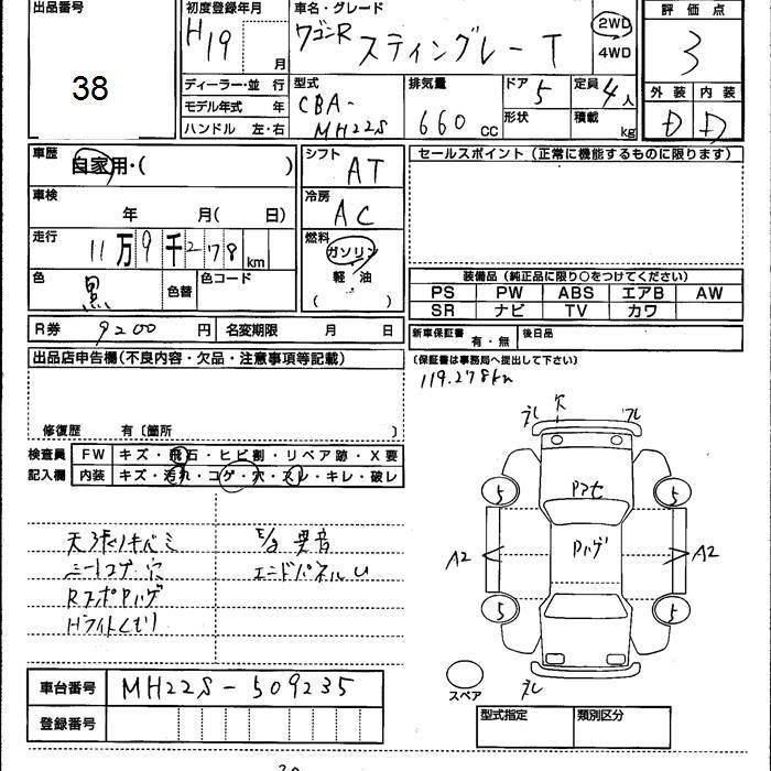 Год выпуска2007 Пробег 119 000 км КузовMH22S КомплектацияT