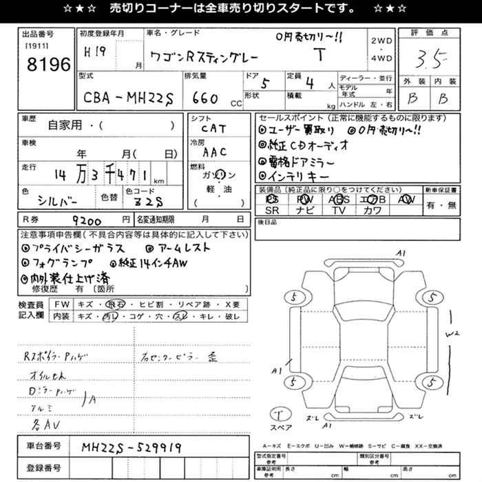 Год выпуска2007 Пробег 143 000 км КузовMH22S КомплектацияT