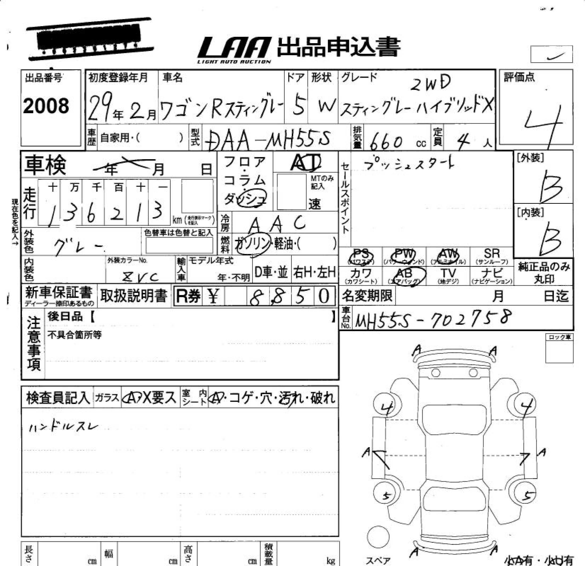 Статус продан Лот 2008 Аукцион LAA Okayama Дата аукциона 20.03.2026