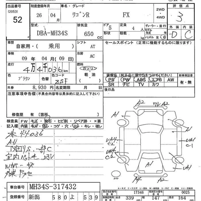 SUZUKI WAGON R 2014 г., лот № 52