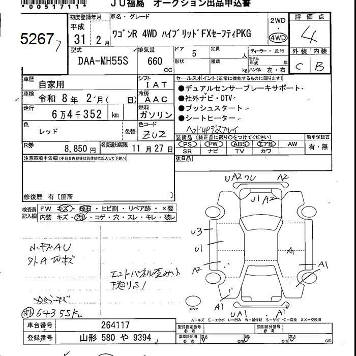 64 000 км КузовMH55S Комплектация4WD HYBRID FX SAFETY PACK SOU TEA K CAR