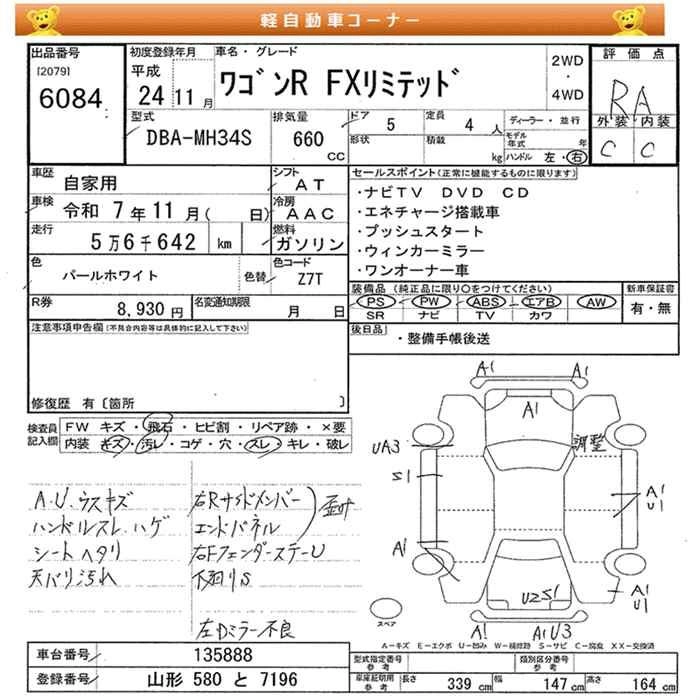 SUZUKI WAGON R 2012 г., лот № 6084