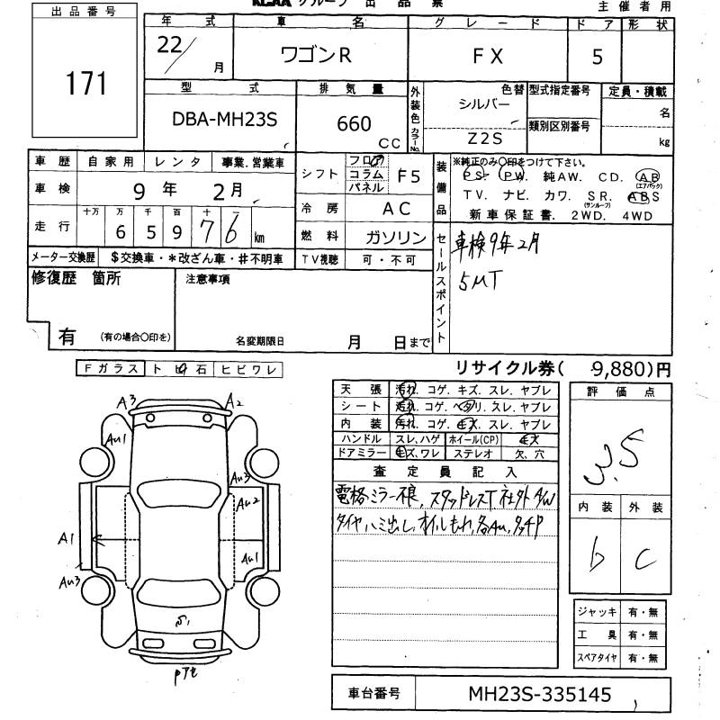 SUZUKI WAGON R 2010 г., лот № 171