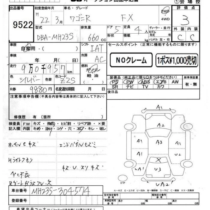 Год выпуска2010 Пробег 91 000 км КузовMH23S КомплектацияFX