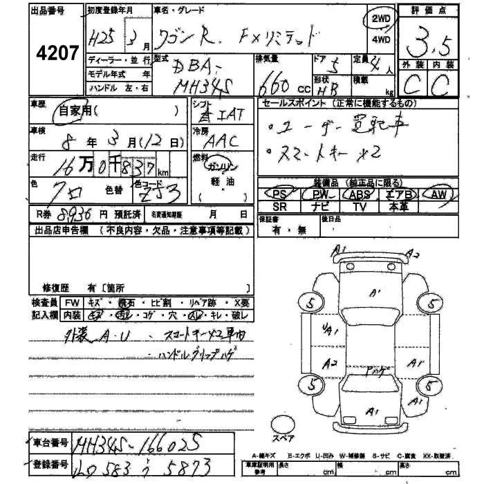 SUZUKI WAGON R 2013 г., лот № 4207