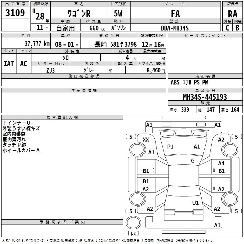SUZUKI WAGON R 2016 г., лот № 3109