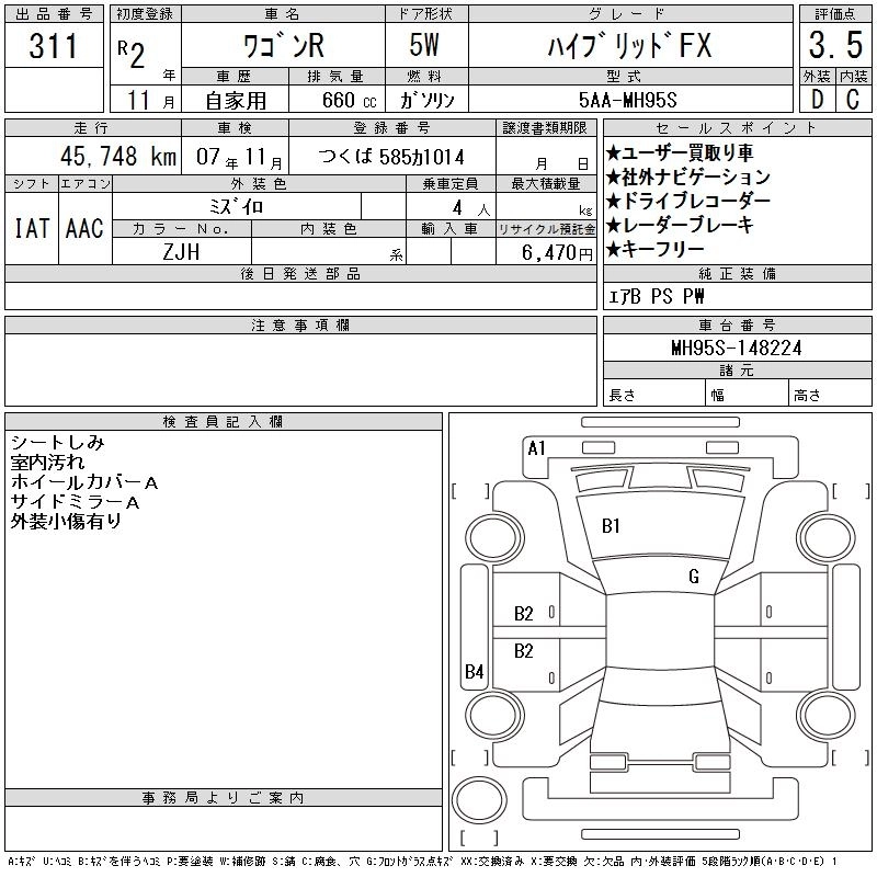 SUZUKI WAGON R 2020 г., лот № 311