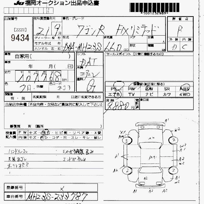 SUZUKI WAGON R 2009 г., лот № 9434