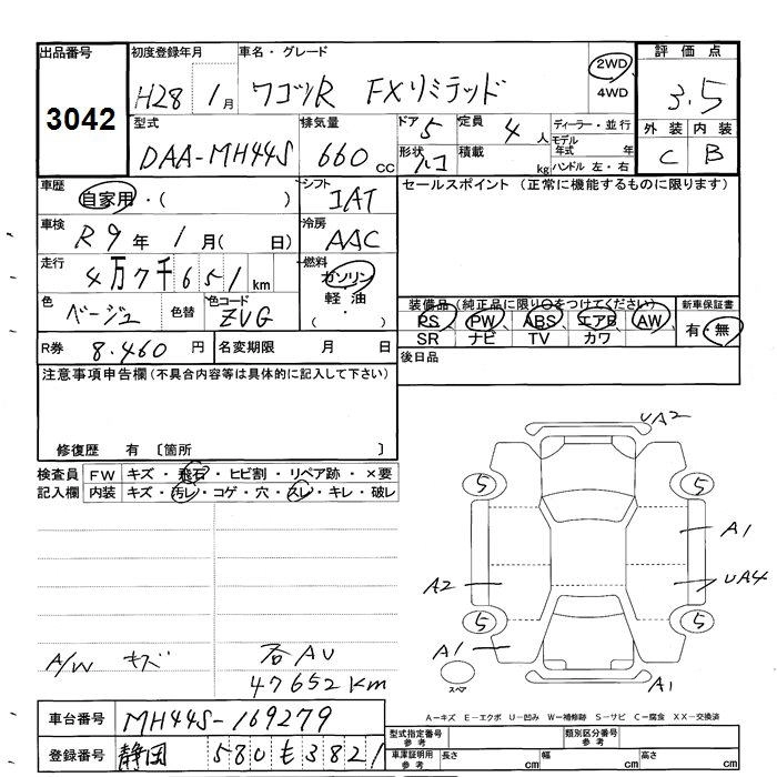 SUZUKI WAGON R 2016 г., лот № 3042