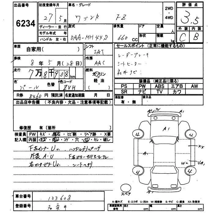 SUZUKI WAGON R 2015 г., лот № 6234