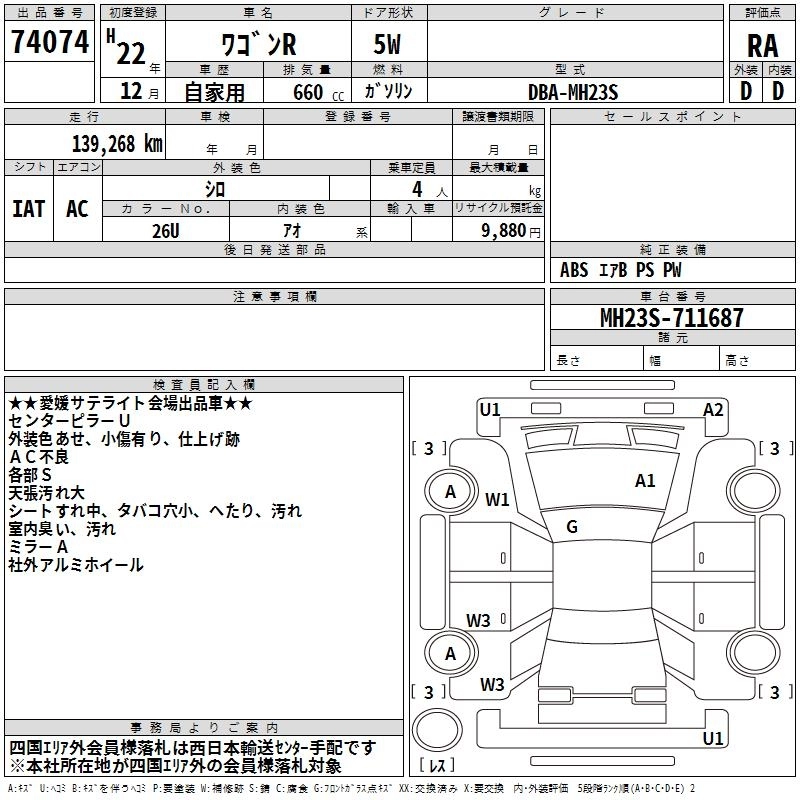 Год выпуска2010 Пробег 139 000 км КузовMH23S