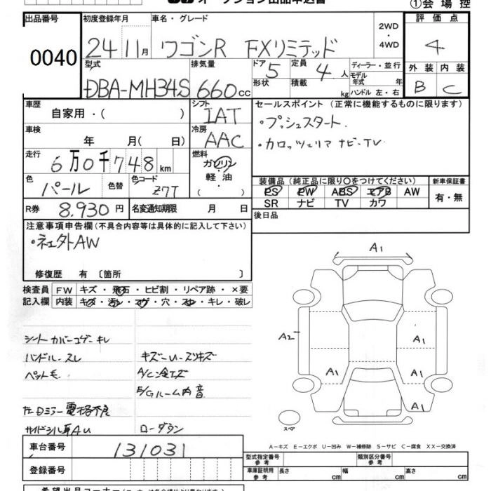 SUZUKI WAGON R 2012 г., лот № 40
