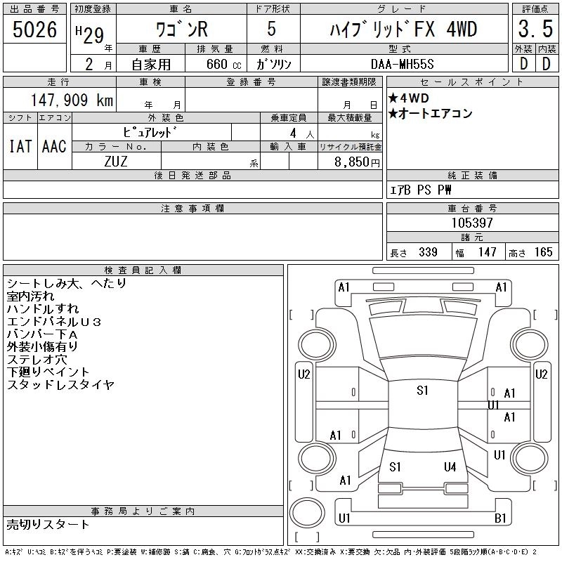 SUZUKI WAGON R 2017 г., лот № 5026