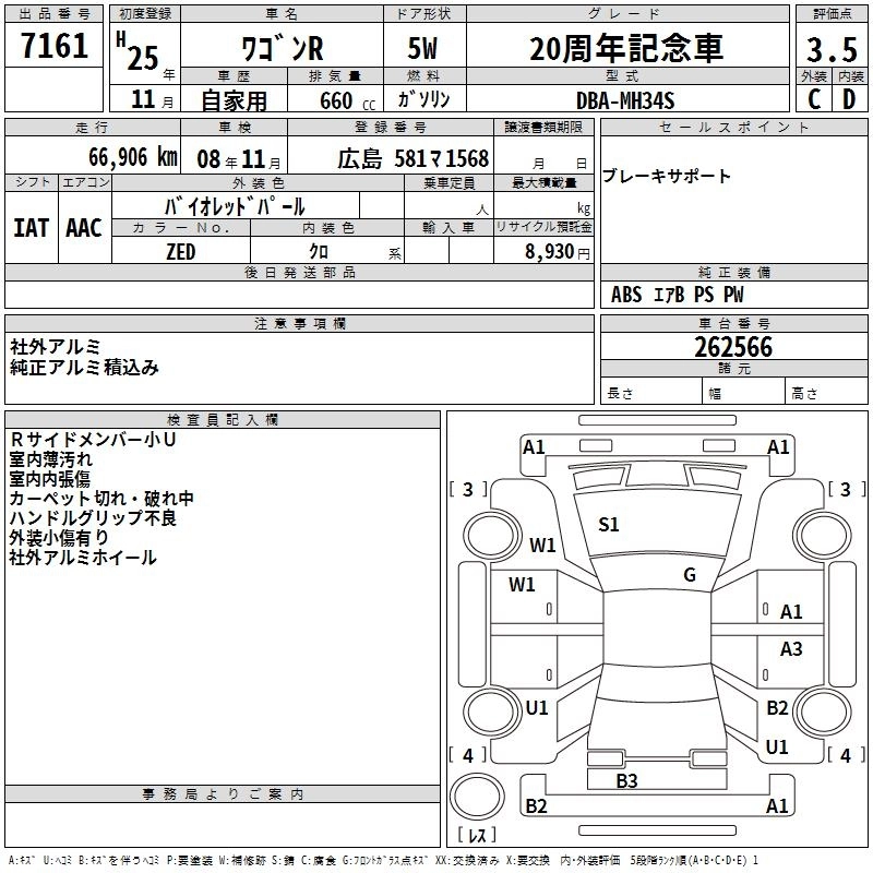 SUZUKI WAGON R 2013 г., лот № 7161