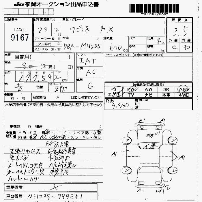 Статус не продан Лот 9167 Аукцион JU Fukuoka Дата аукциона 23.01.2026