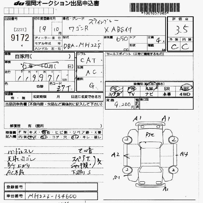 Статус не продан Лот 9172 Аукцион JU Fukuoka Дата аукциона 23.01.2026