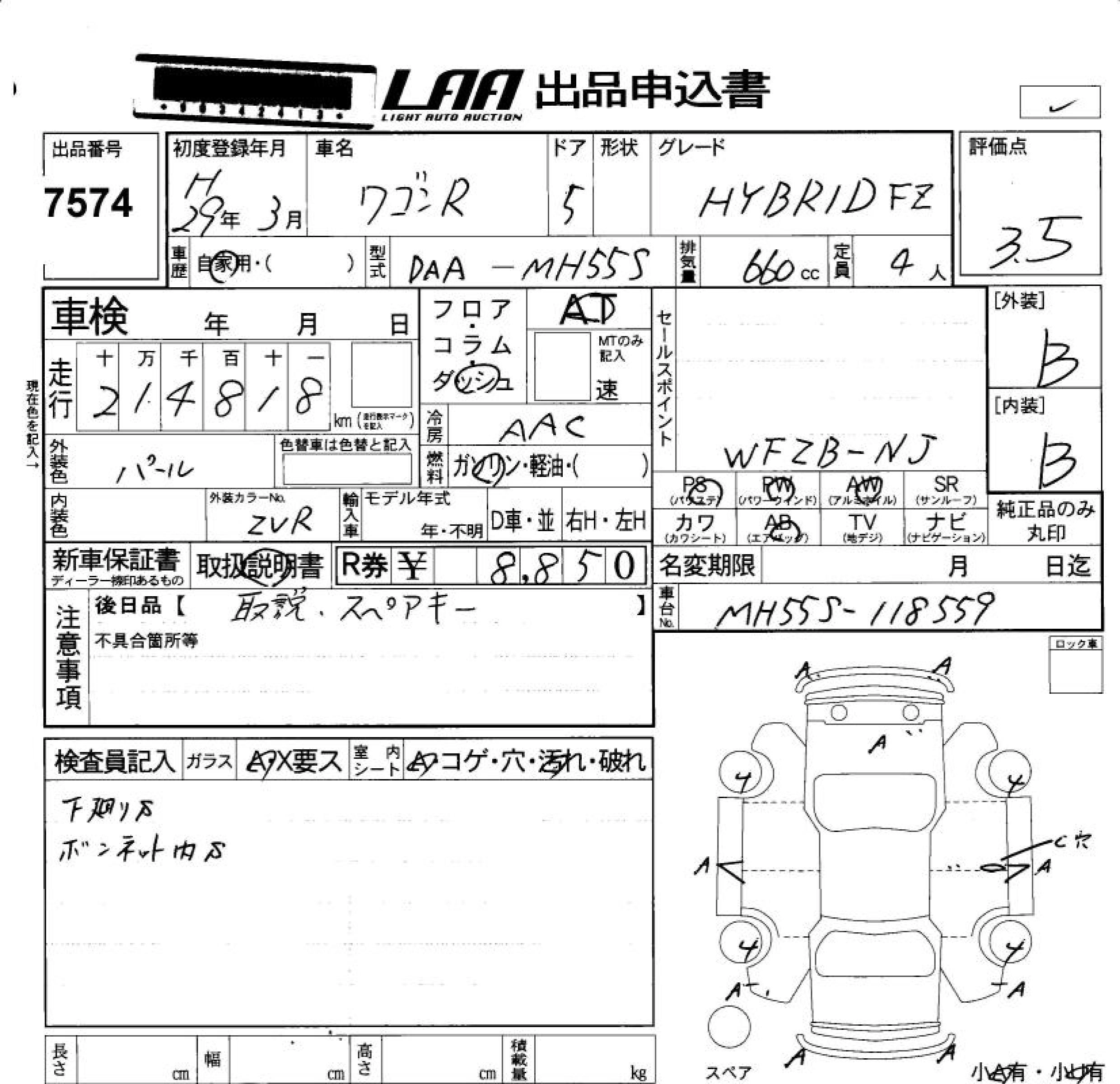 SUZUKI WAGON R 2017 г., лот № 7574