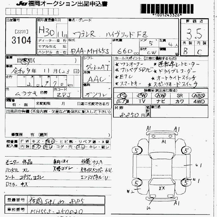 Статус продан Лот 3104 Аукцион JU Fukuoka Дата аукциона 23.01.2026