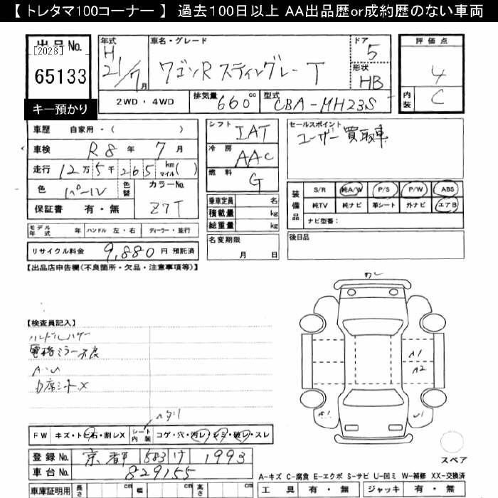 SUZUKI WAGON R 2009 г., лот № 65133