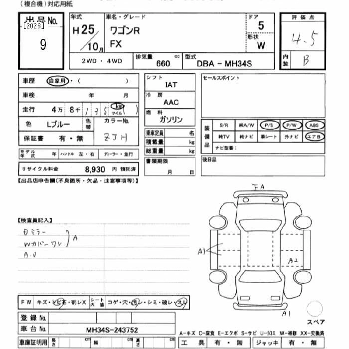 Год выпуска2013 Пробег 48 000 км КузовMH34S КомплектацияFX