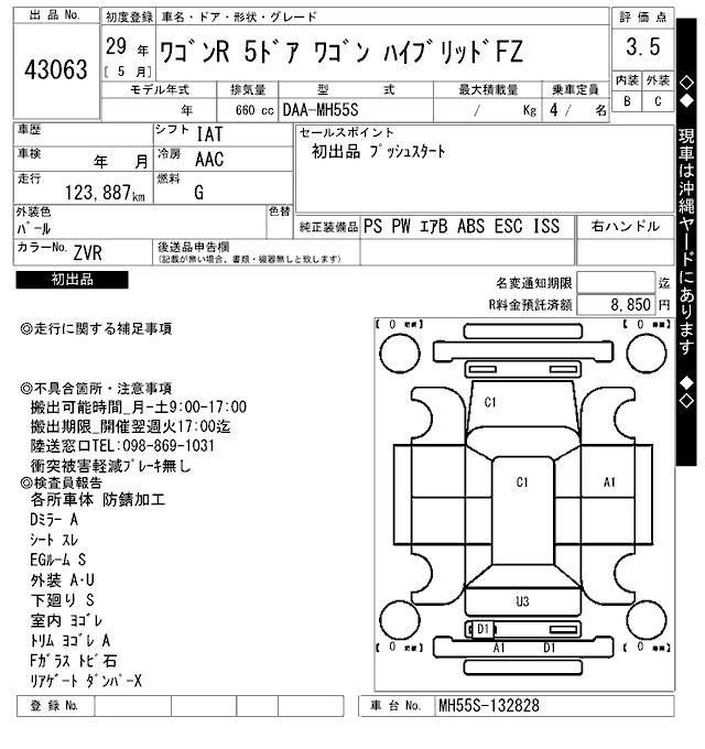 SUZUKI WAGON R 2017 г., лот № 43063