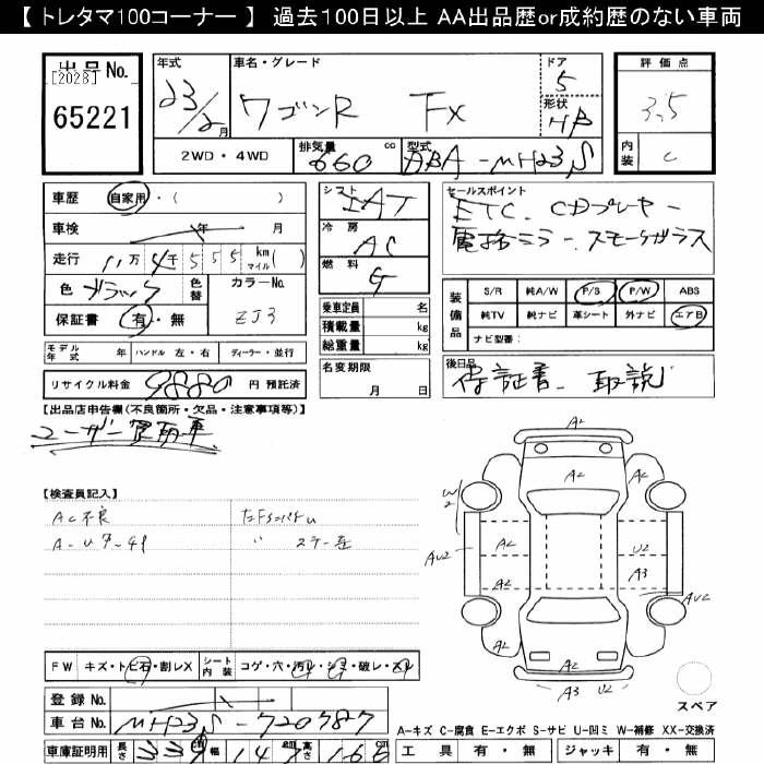 SUZUKI WAGON R 2011 г., лот № 65221
