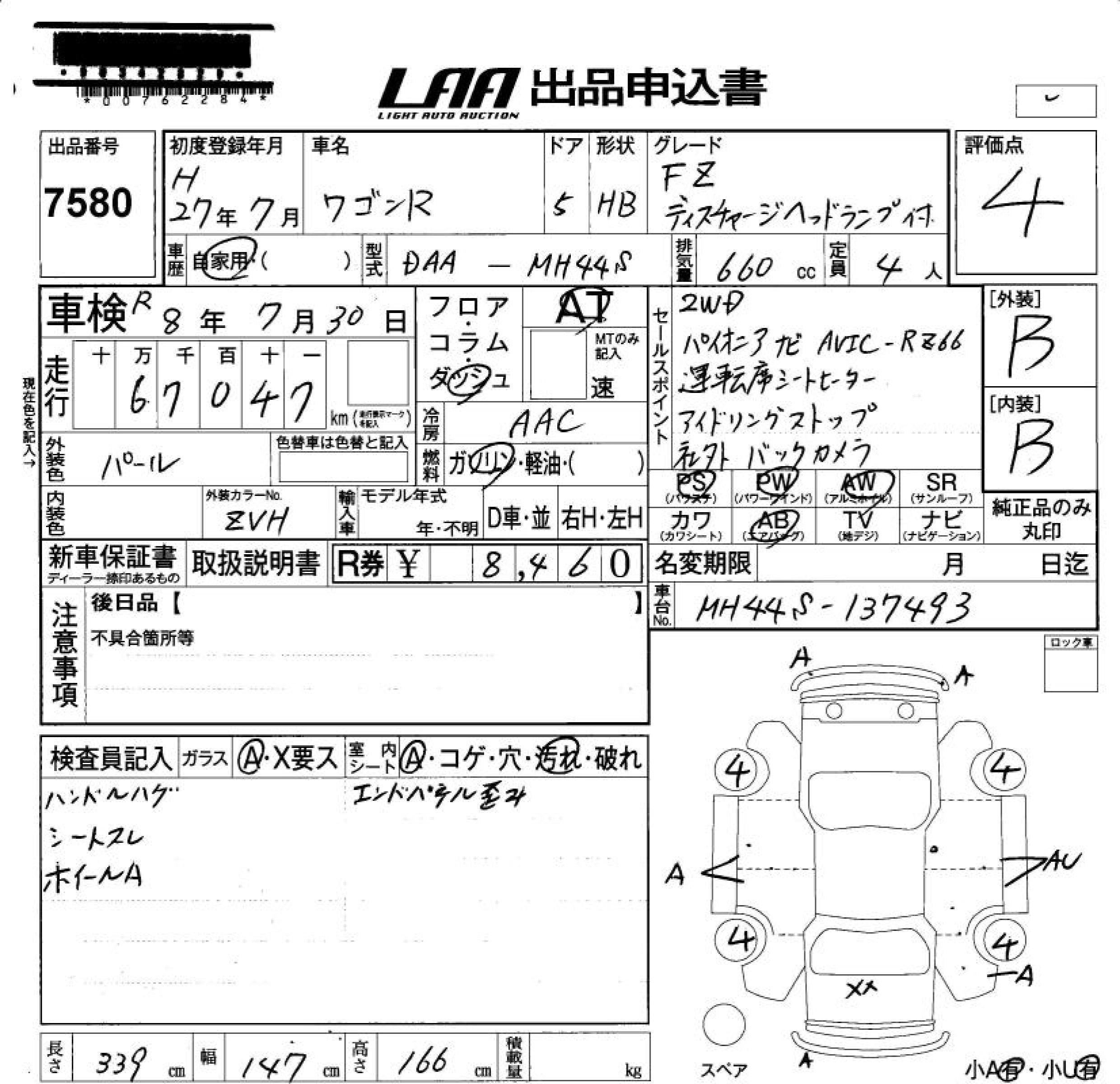 Год выпуска2015 Пробег 67 000 км КузовMH44S КомплектацияFZ HID (HIGH INTENSITY DISCHARGE) HEAD LIGHT RAN