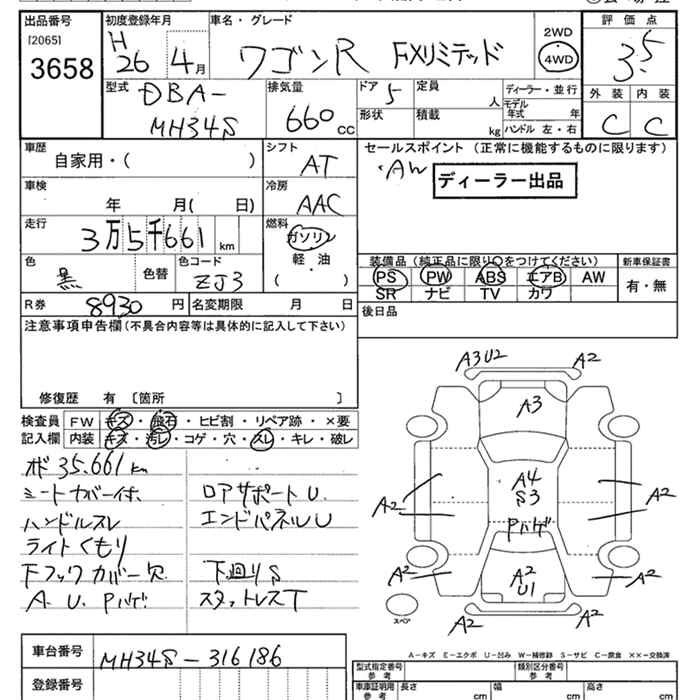 SUZUKI WAGON R 2014 г., лот № 3658