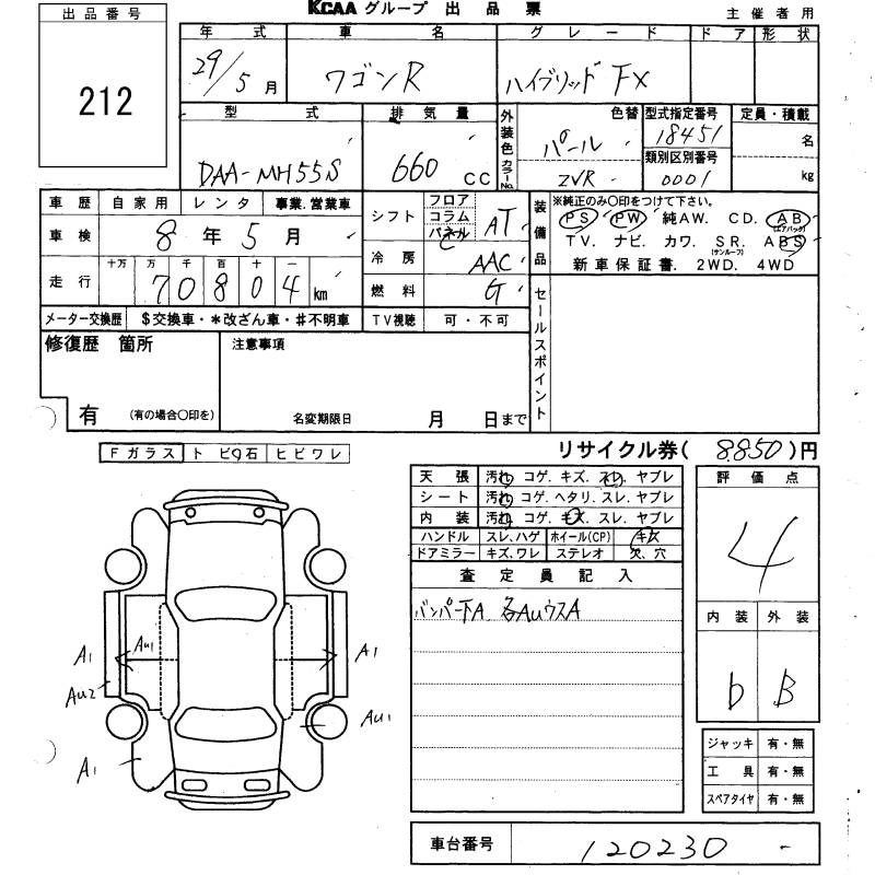 SUZUKI WAGON R 2017 г., лот № 212
