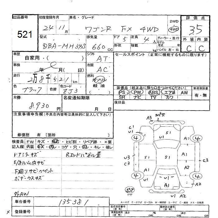 SUZUKI WAGON R 2012 г., лот № 521