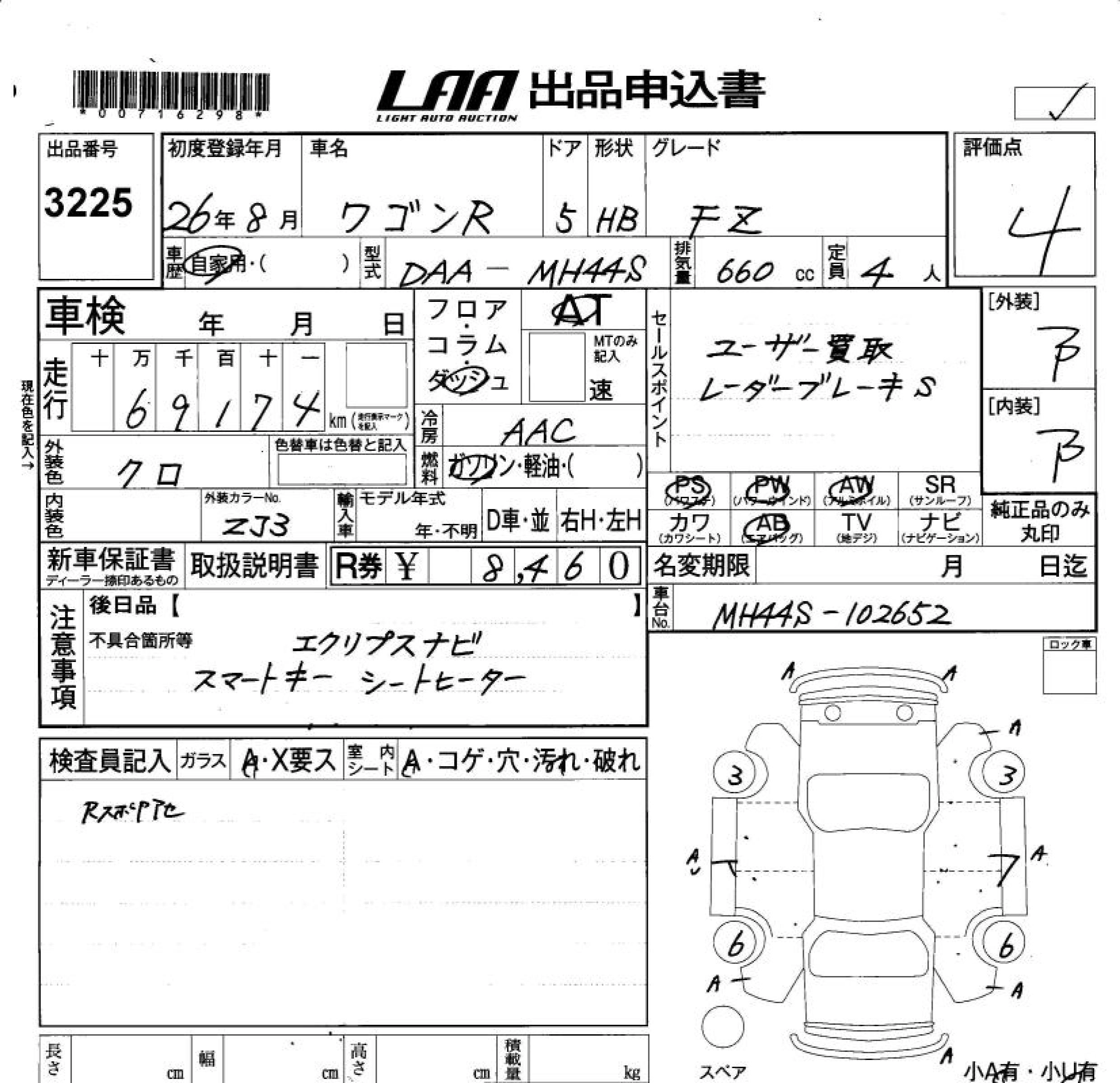 SUZUKI WAGON R 2014 г., лот № 3225