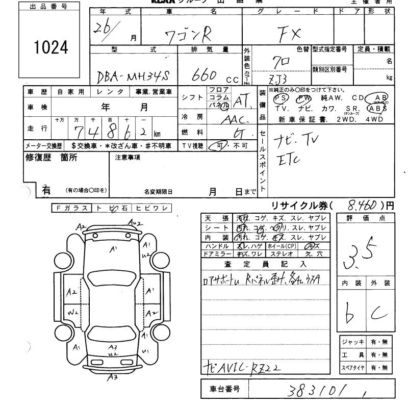 SUZUKI WAGON R 2014 г., лот № 1024