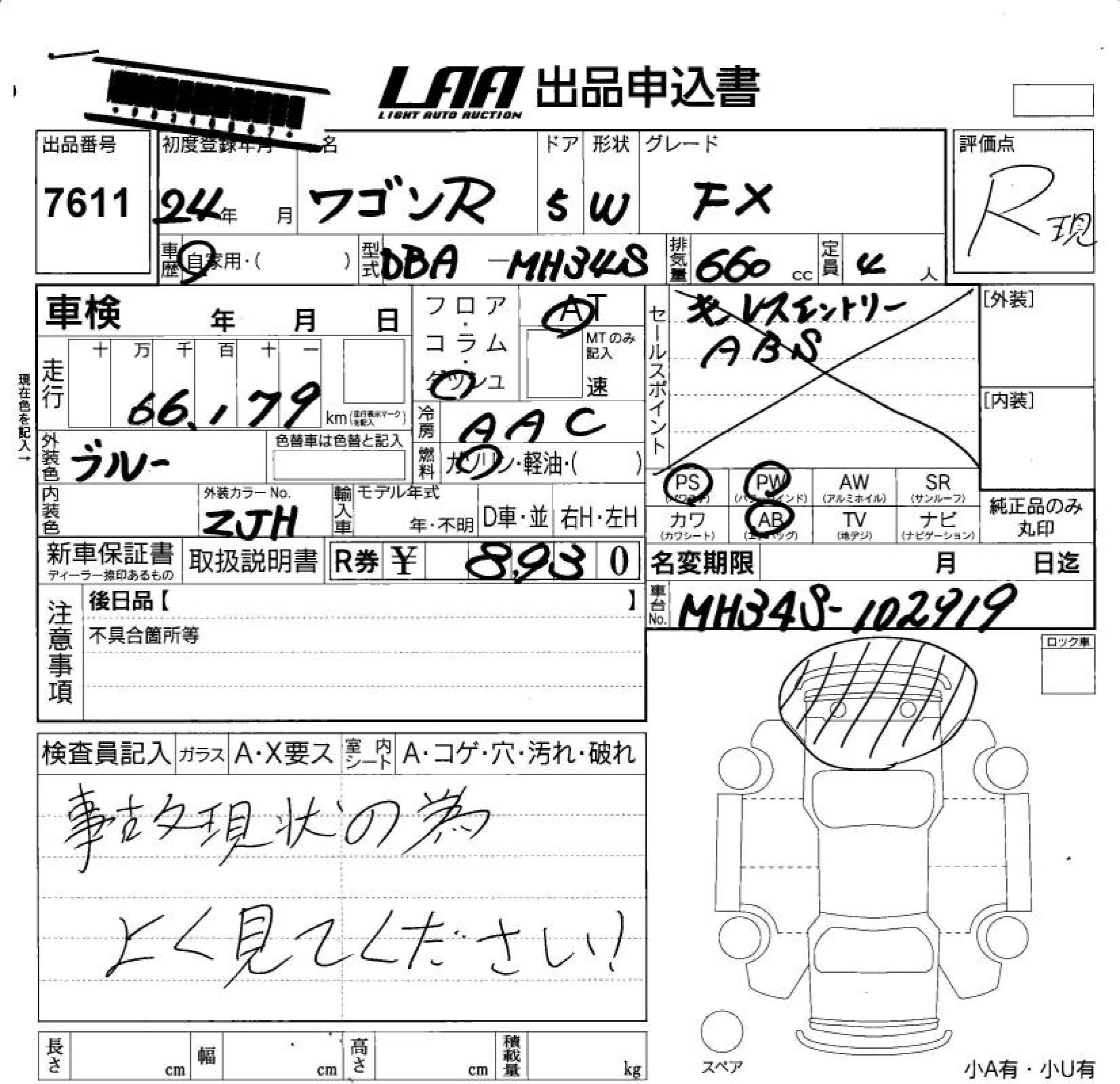 Год выпуска2012 Пробег 66 000 км КузовMH34S КомплектацияFX