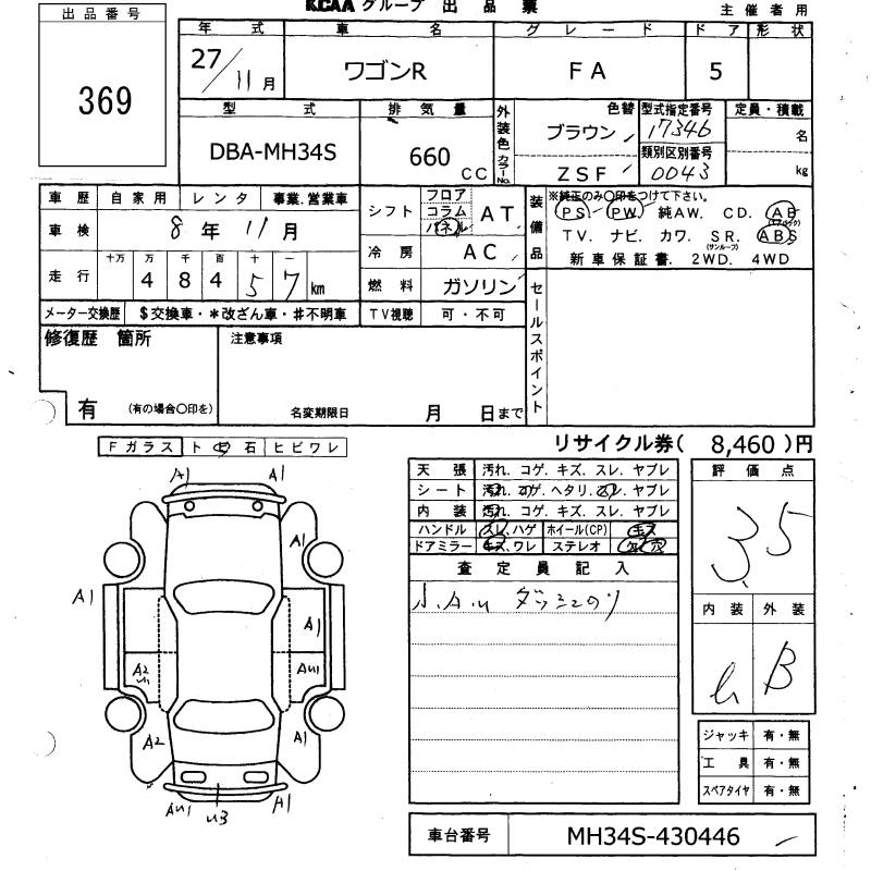 SUZUKI WAGON R 2015 г., лот № 369