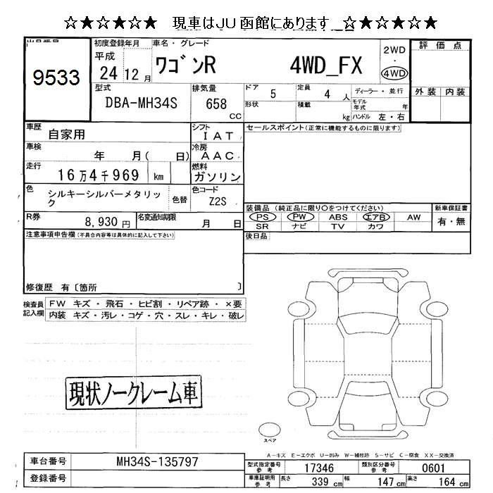 Год выпуска2012 Пробег 165 000 км КузовMH34S Комплектация4WD FX
