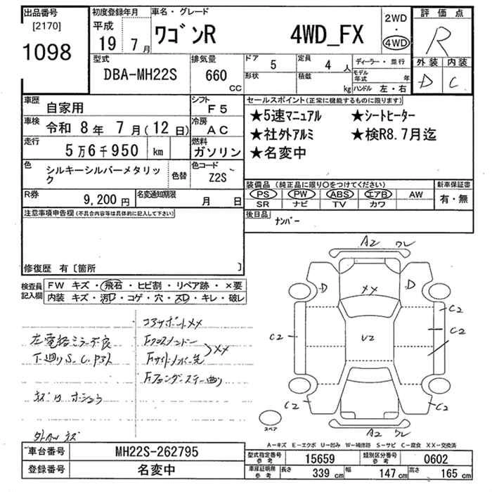 SUZUKI WAGON R 2007 г., лот № 1098