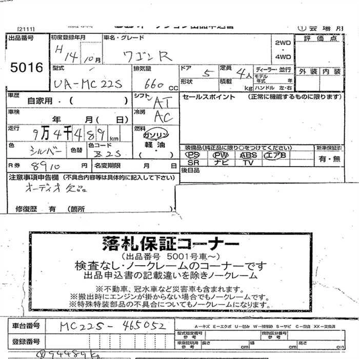 SUZUKI WAGON R 2002 г., лот № 5016