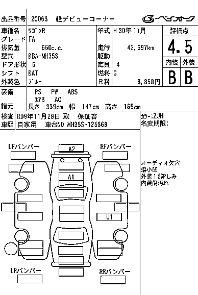 SUZUKI WAGON R 2018 г., лот № 20063