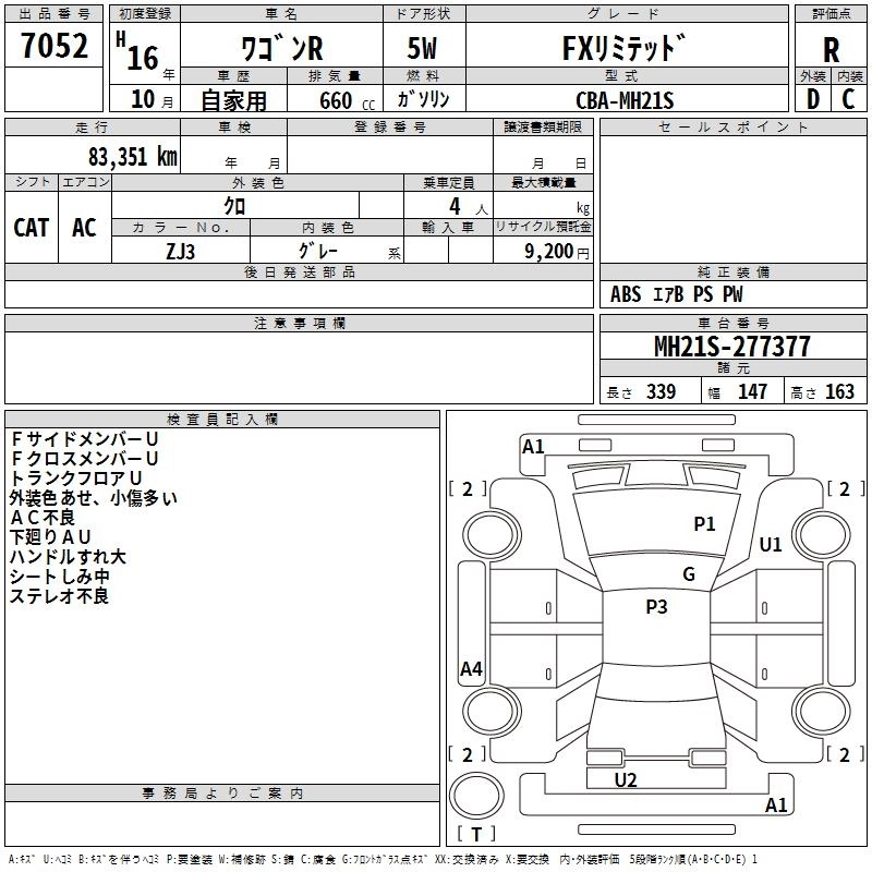 SUZUKI WAGON R 2004 г., лот № 7052