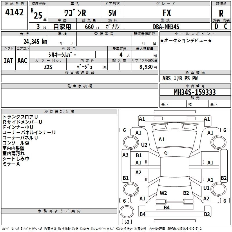 SUZUKI WAGON R 2013 г., лот № 4142