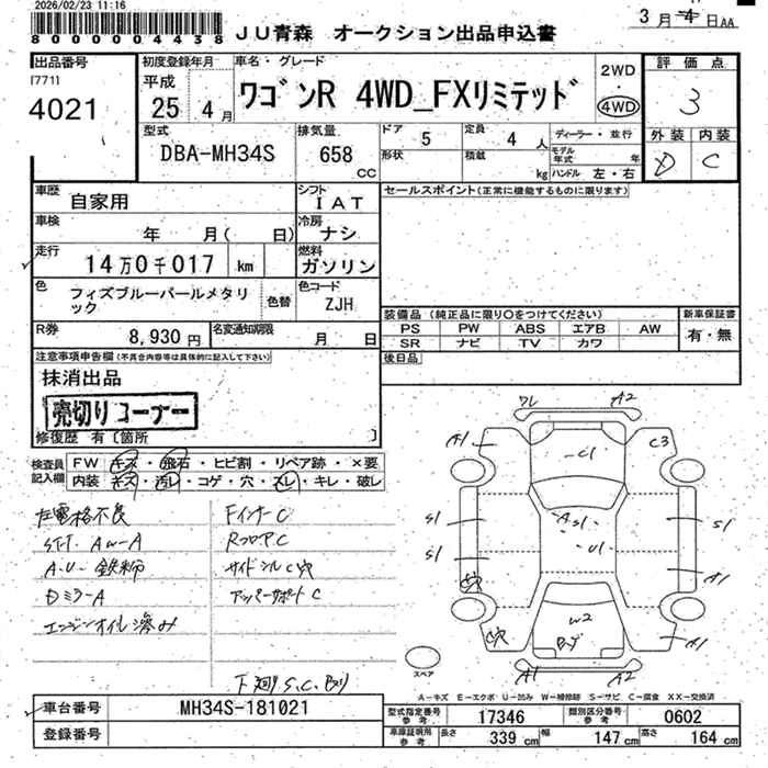 Статус выставлен на аукцион Лот 4021 Аукцион JU Aomori Дата аукциона 11.03.2026