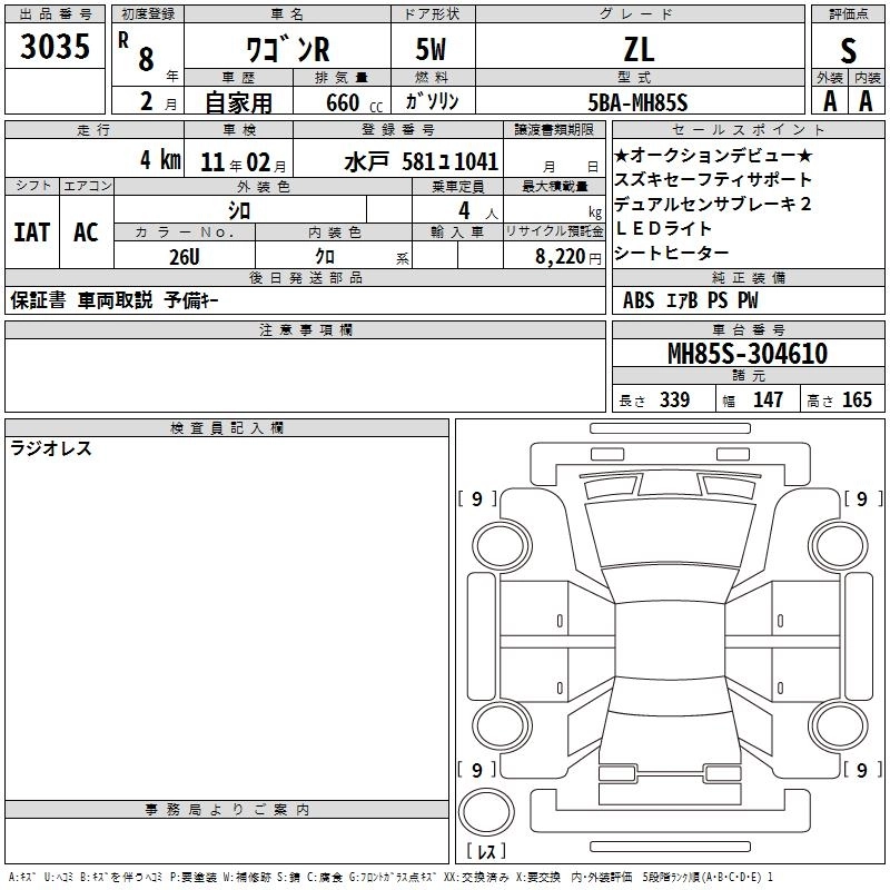 SUZUKI WAGON R 2026 г., лот № 3035