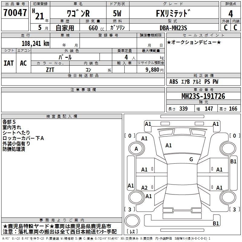 SUZUKI WAGON R 2009 г., лот № 70047