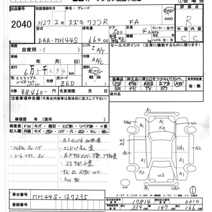 SUZUKI WAGON R 2015 г., лот № 2040