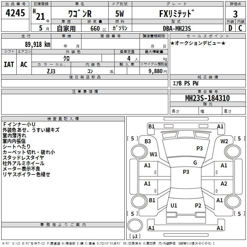 SUZUKI WAGON R 2009 г., лот № 4245